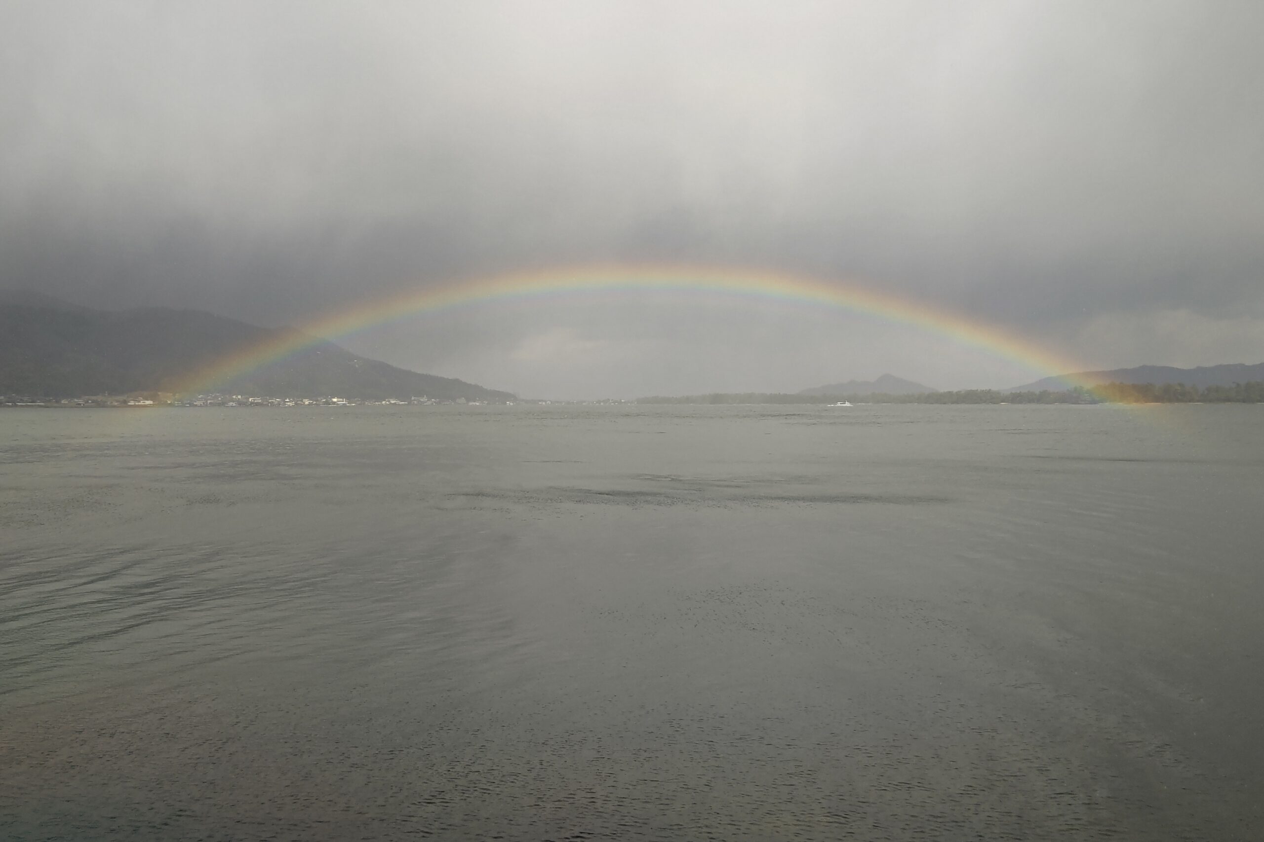 ふいに海の向こうへひとすじの虹が架かった。