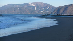 浜には、誰かの足跡が淡く残っていた。