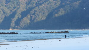 冬の光をまとった波は、夏のように無邪気にはしゃぐのではなく、ひとつひとつ、言葉をえらぶように寄せては返す。
