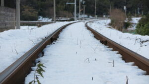 雪の積もった線路は、まっすぐに遠くを指していた。